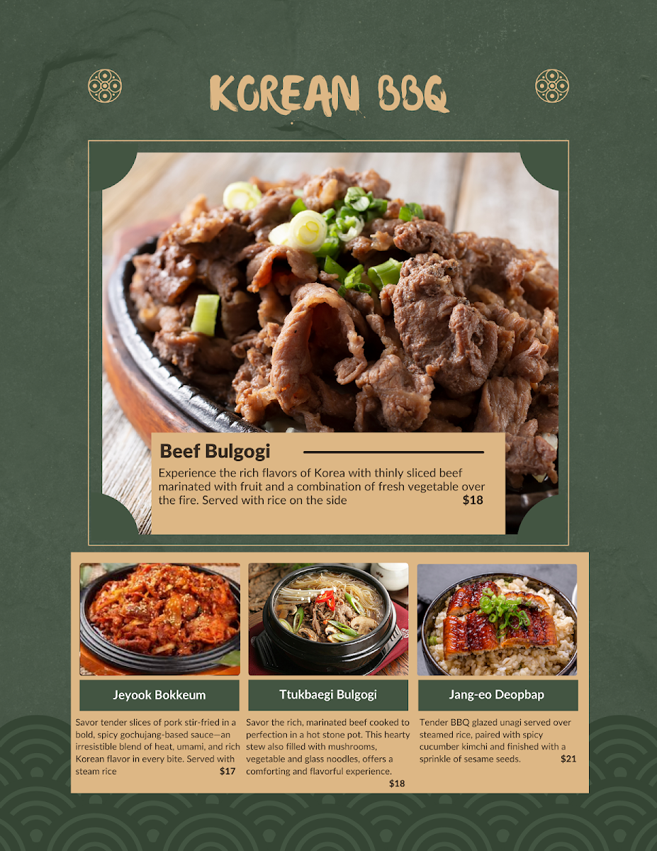 But the culinary adventure doesn’t stop at coffee! The menu boasts an impressive selection of dishes that will transport your taste buds straight to Korea. Indulge in the deeply satisfying Ganjang Chicken Wings or savor the heartwarming Kimchi Jjigae—a delightful stew that warms you from the inside out. For something a little more substantial, the StonePot Bibimbap is a colorful medley of flavors and textures, offering rice topped with a variety of vegetables and your choice of protein, served piping hot!